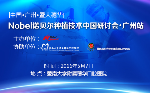 2016年5月7日,Nobel诺贝尔种植技术中国研讨会广州站将于穗华口腔医院(广州市天河区黄埔大道西413号)隆重召开。此次研讨会由Nobel种植系统公司主办,穗华口腔医院和首都医科大学附属北京口腔医院协办。