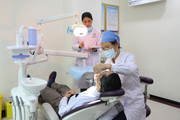 ▲专家为缺牙者进行口腔健康全面检查