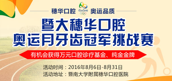 在里约奥运会开幕之际,穗华口腔医院开展奥运月牙齿冠军挑战赛,让广大爱牙人士感受奥运氛围,领略奥运会风采,过足一把“奥运瘾”。
