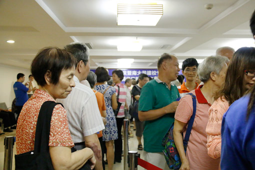 市民们怀着激动的心情排队签到、领取抽奖券,准备入场