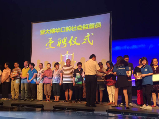 穗华口腔医院还招募了一批社会监督员,以帮助不断提高穗华口腔的服务质量。今晚,社会监督员受邀来到现场,并上台接受聘请。