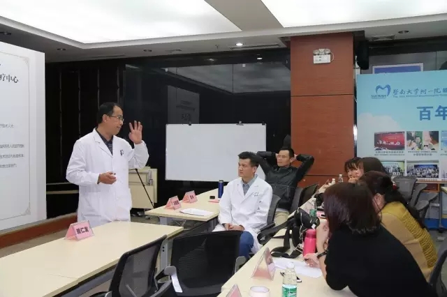 负责治疗的冯智强博士现场讲解修复治疗种植牙并发症的过程
