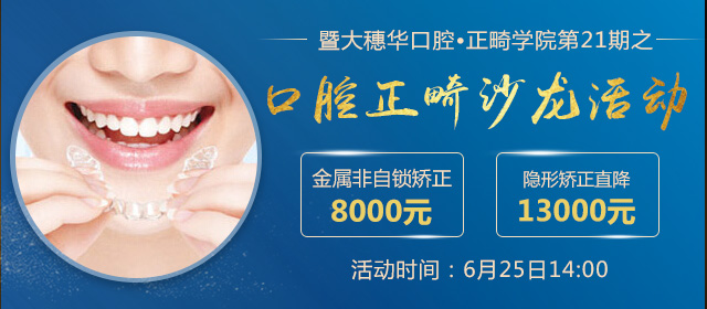 6月25日,穗华口腔医院·正畸学院第21期之口腔正畸沙龙活动将于穗华口腔医院盛大开幕。届时将有正畸名医到场,为广大正畸患者授课,揭开牙齿矫正的神秘面纱,量身定制正畸方案,让您的牙齿焕然一新!