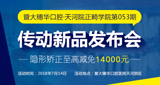 为了让更多的市民能够体验更加先进的牙齿矫治技术,穗华口腔医院天河院区将于7月14日举办金牌笑容.百年传承 穗华口腔医院•正畸学院第53期之传动新品发布。届时,在场市民可以亲眼见证由北京大学口腔医学院林久祥教授自主研发的传动直丝弓矫治技术,更全面的了解传动直丝弓矫治技术的特点,并且可和资深正畸专家面对面交流,解决您对牙齿矫正的疑惑。