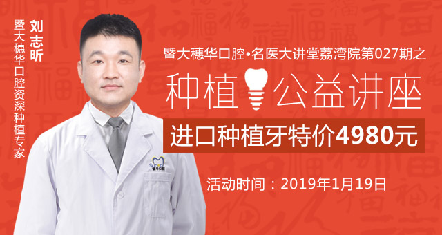 为了让市民能够带着长辈种好牙,穗华口腔荔湾院区于1月19日举办穗华口腔医院•名医大讲堂第027期之种植公益讲座。届时,穗华口腔医院资深种植专家,北京大学口腔医学院访问学者刘志昕将出席本次种植公益讲座,给在场市民讲解业界前沿的种植牙知识。在活动现场,市民不仅有机会得到种植专家的一对一解答,还有机会领取精美好礼。