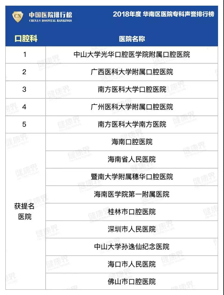 【重磅发布】广州口腔哪家强?复旦版中国百强医